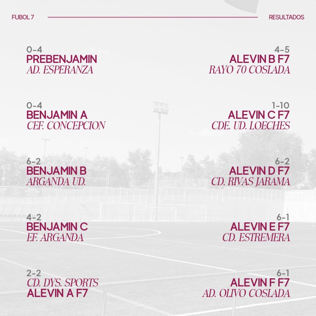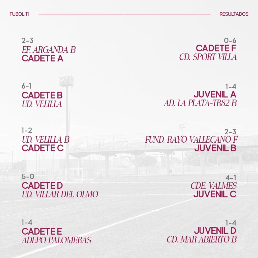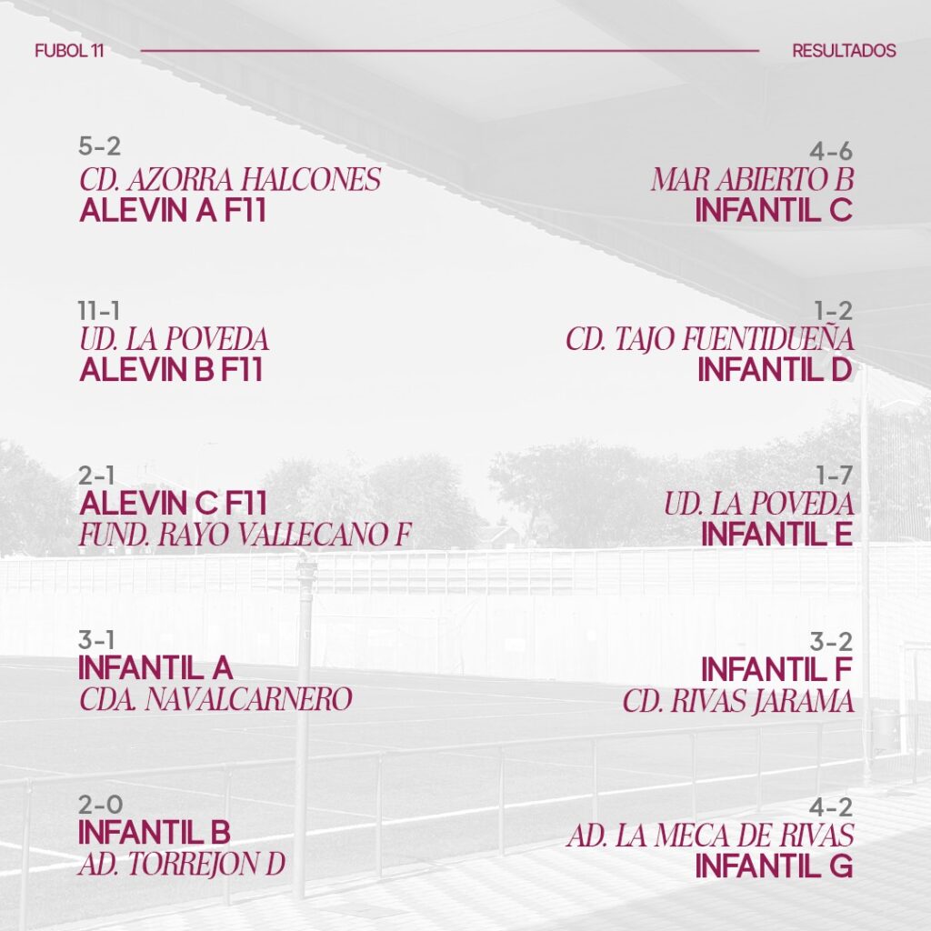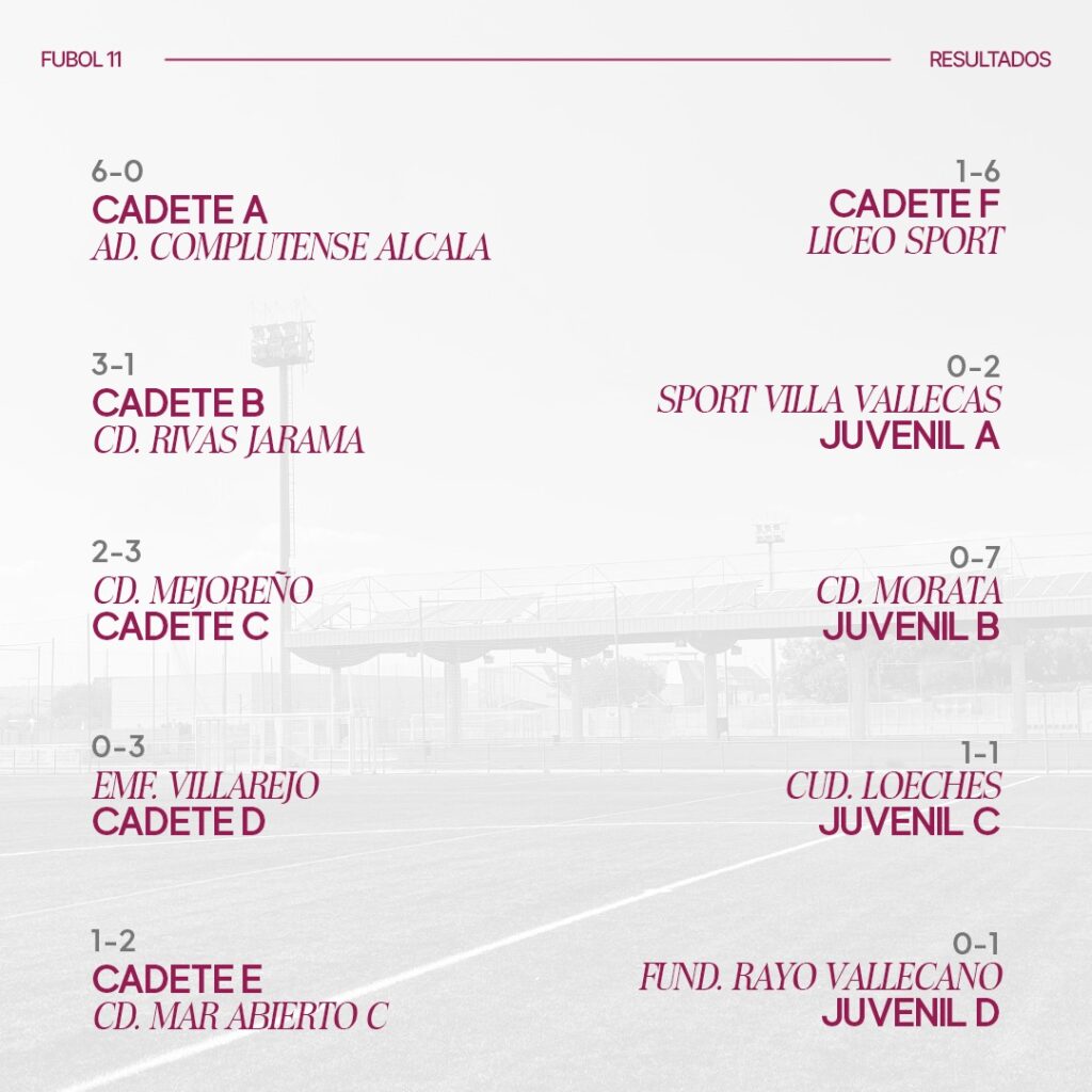 Contamos con equipos inscritos en la Real Federación de Fútbol de Madrid en las categorías Prebenjamín, Benjamín, Alevín Fútbol 7 y Fútbol 11, Infantil, Cadete, Juvenil y Aficionado, al mismo tiempo, contamos con equipos prebenjamín y chupetines inscritos en las ligas municipales de Rivas Vaciamadrid.