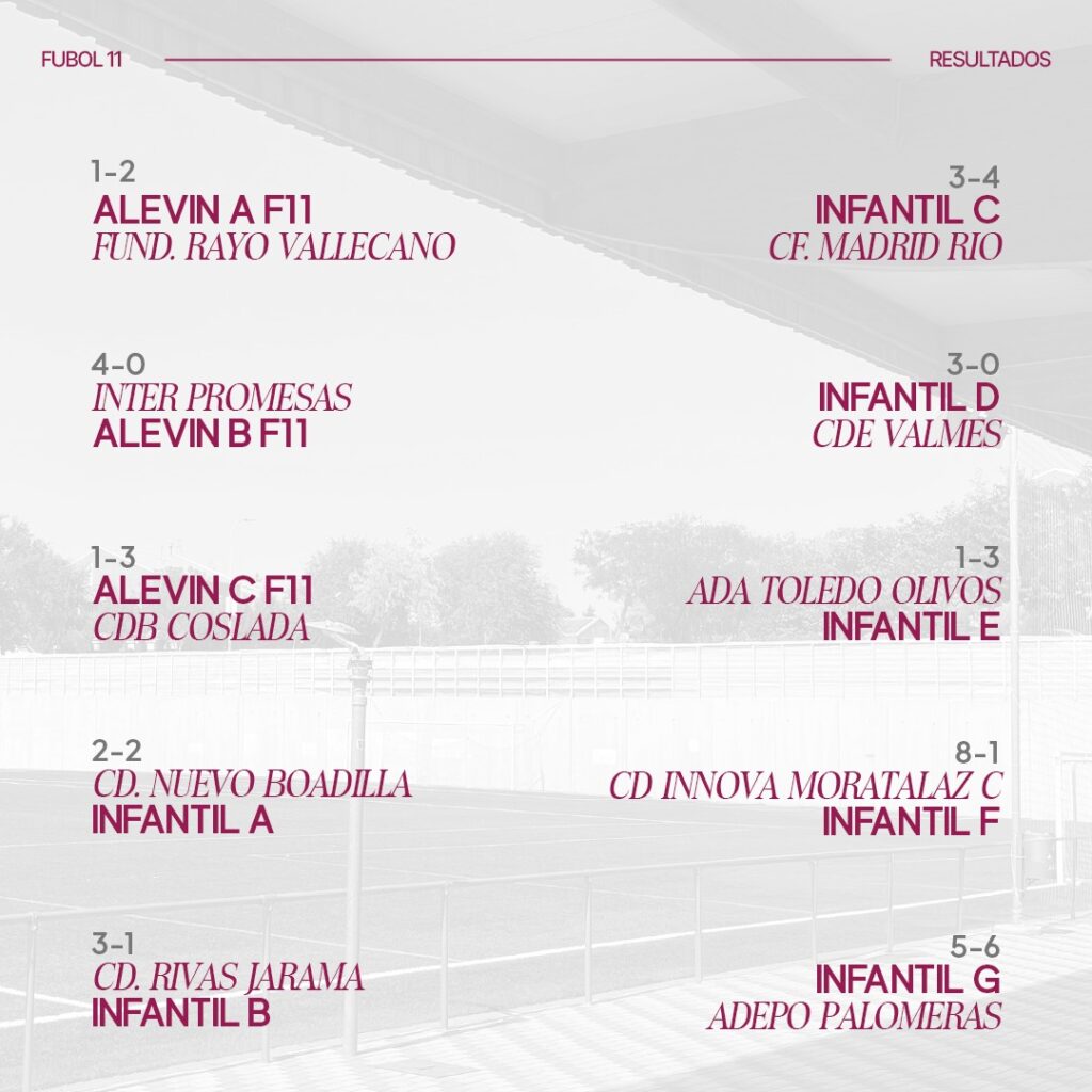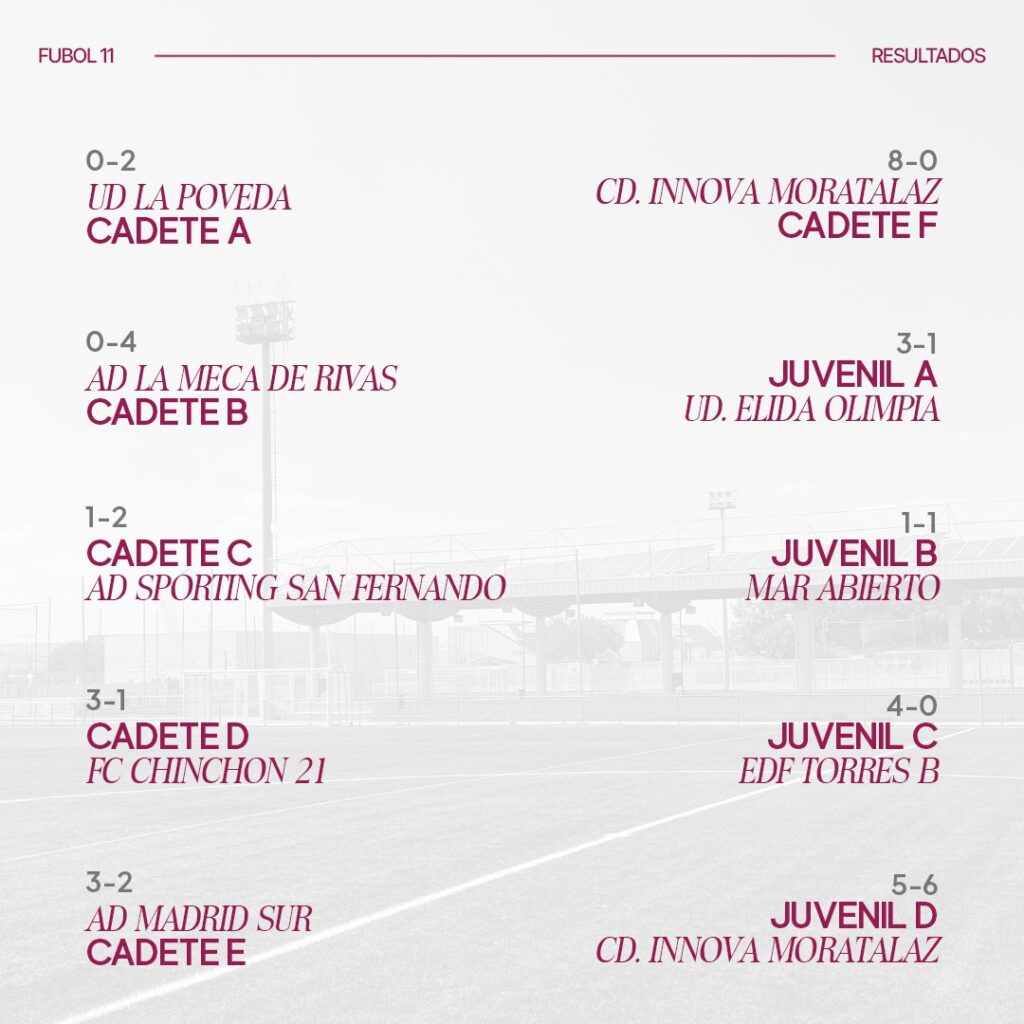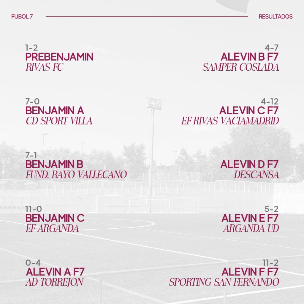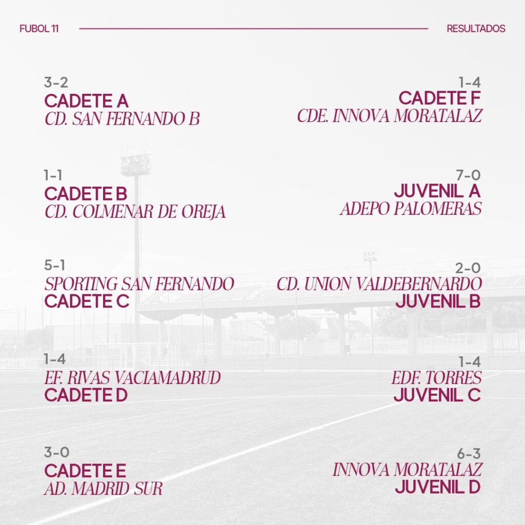 Contamos con equipos inscritos en la Real Federación de Fútbol de Madrid en las categorías Prebenjamín, Benjamín, Alevín Fútbol 7 y Fútbol 11, Infantil, Cadete, Juvenil y Aficionado, al mismo tiempo, contamos con equipos prebenjamín y chupetines inscritos en las ligas municipales de Rivas Vaciamadrid.