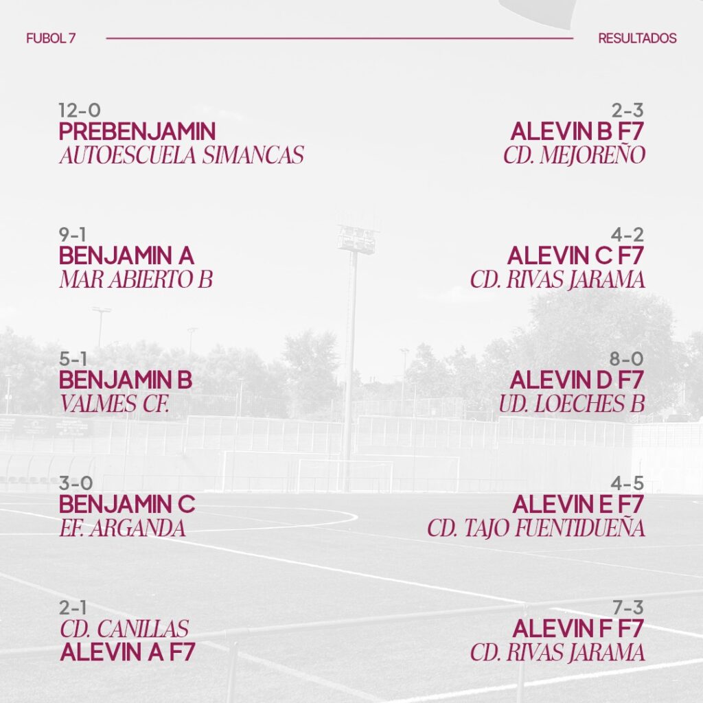 Tenemos equipos en todas las categorías de la RFFM, Aficionado, Cadetes, Infantiles, Alevines F11 y F7, Benjamines F7 y Prebenjamínes F7. Pulsa en los iconos inferiores para conocerlos.